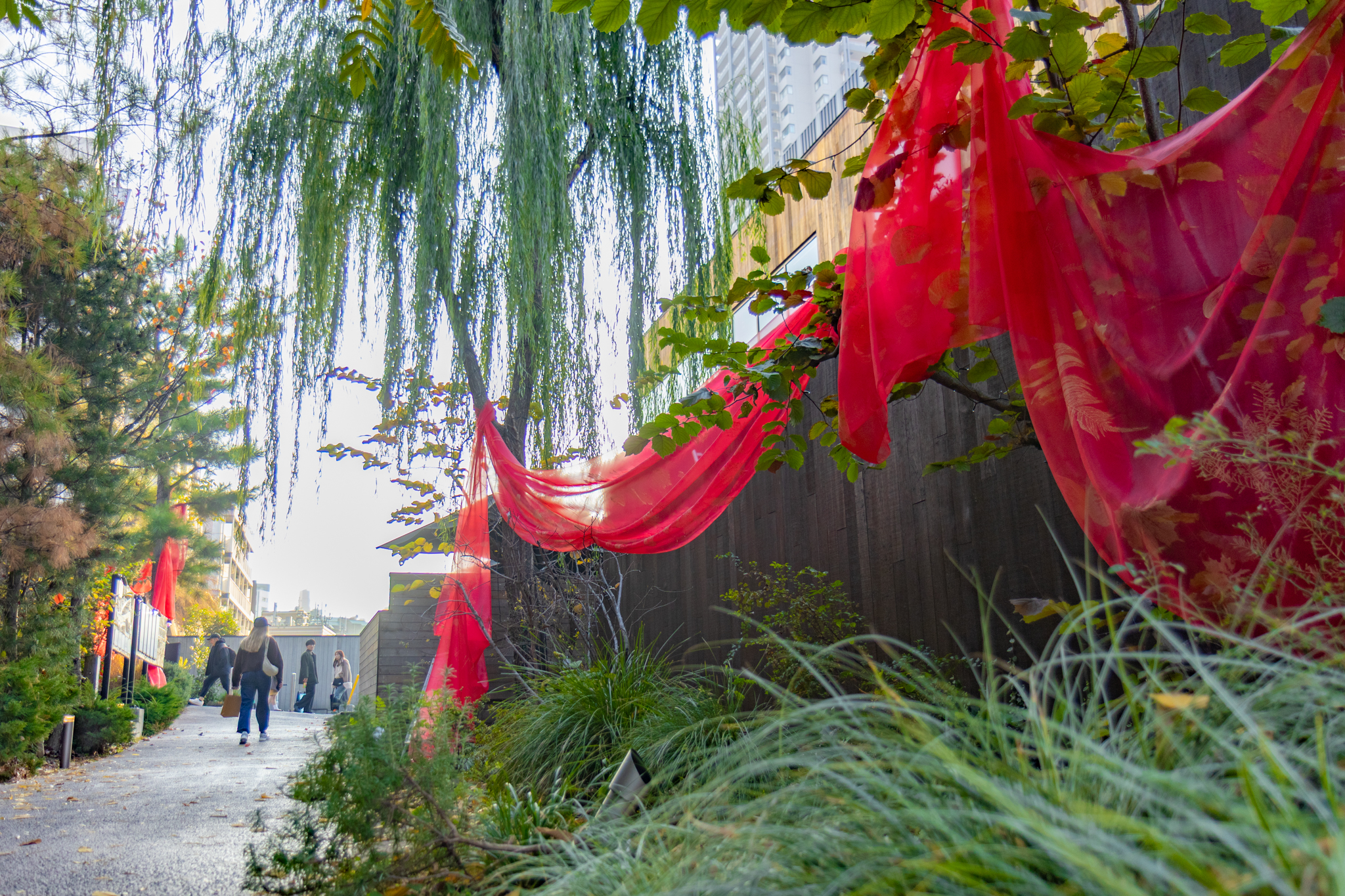 かつて東横線の電車が通っていた線路跡地に広がるのは、全長約220mの散策路。